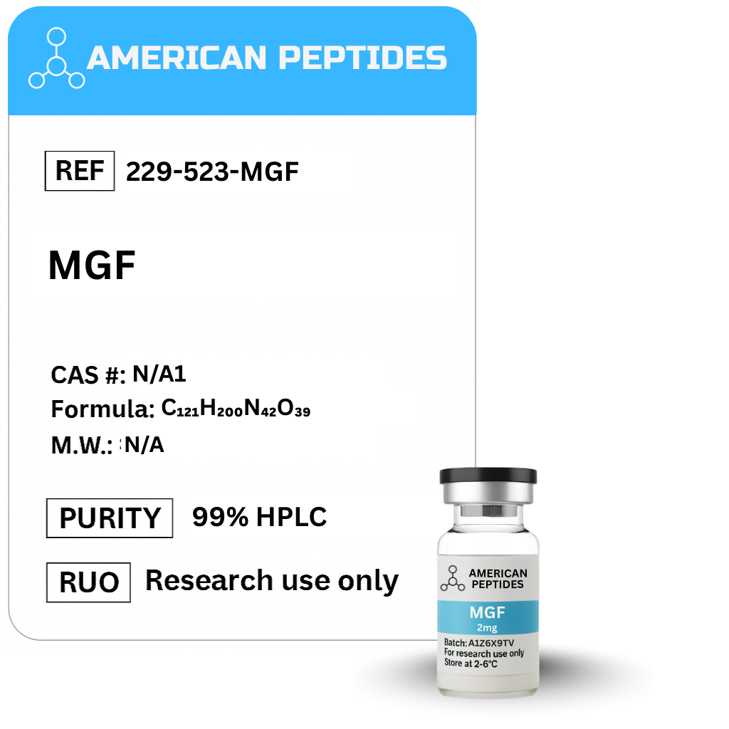 Mechano Growth Factor peptide is available for research and laboratory purposes only. It is not intended for human or animal therapeutic use.